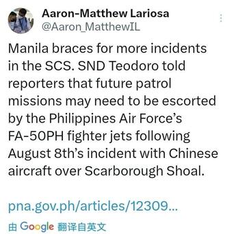 论口嗨实力,中国是远远不如菲律宾的!菲律宾国防部长特奥多罗通过菲律宾记者向中国隔空喊话,内容是“继8月8日中国飞机在黄岩岛发生事件后,未来的巡逻任务可能需要菲律宾空军的FA-50PH战斗机护航。”言外之意,菲律宾准备继续南海搞事,而且威胁要大幅提高对抗的强度,要让菲律宾空军给中国一个“教训”。